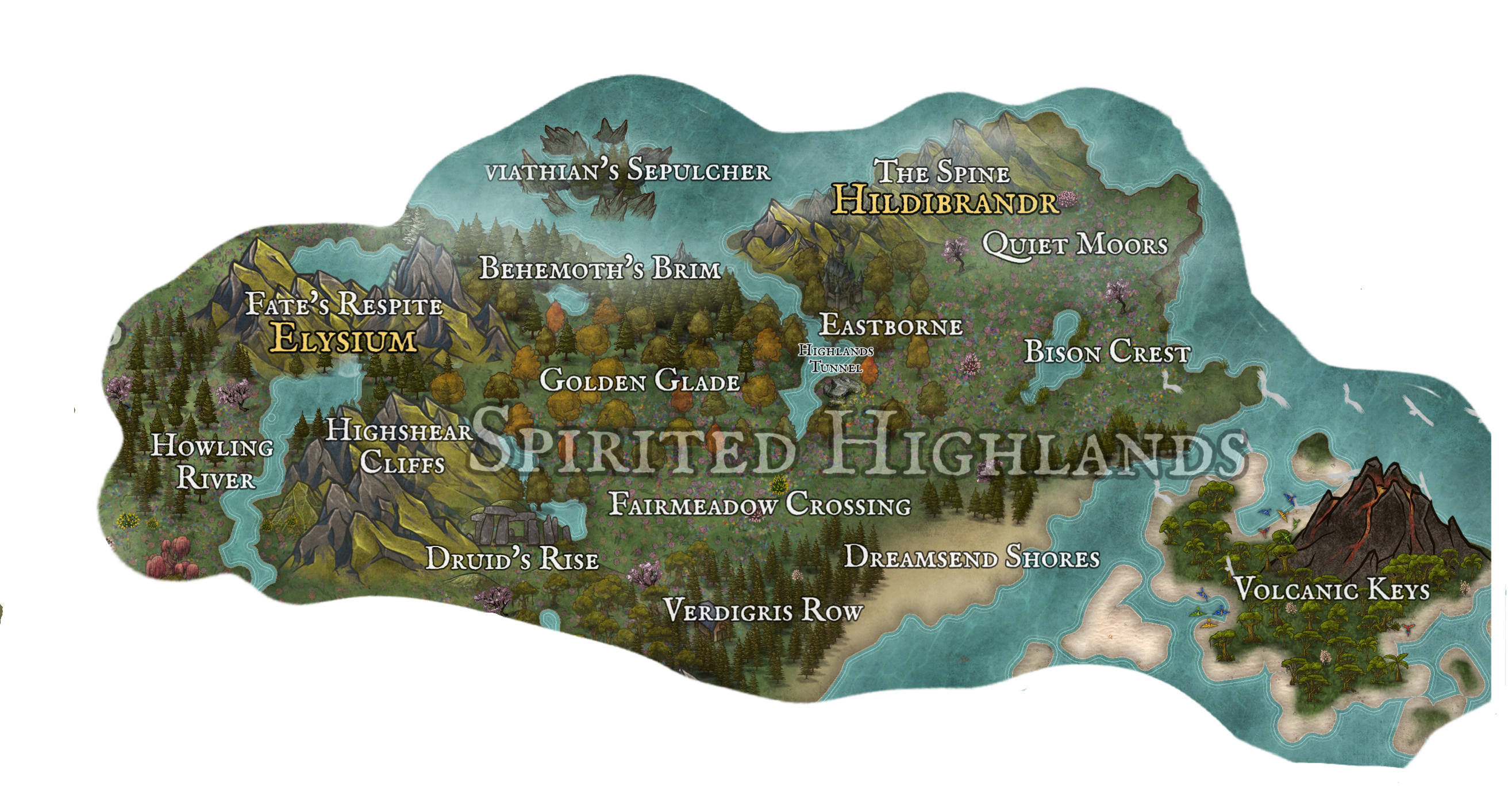 Internal TerritoriesBehemoth BrimBison CrestDreamsend ShoresDruid RiseEastborneFairmeadow CrossingFate's RespiteGolden GladeHighshear CliffsHowling RiverLeviathan’s SepulcherQuiet MoorsThe SpineVerdigris RowVolcanic Keys