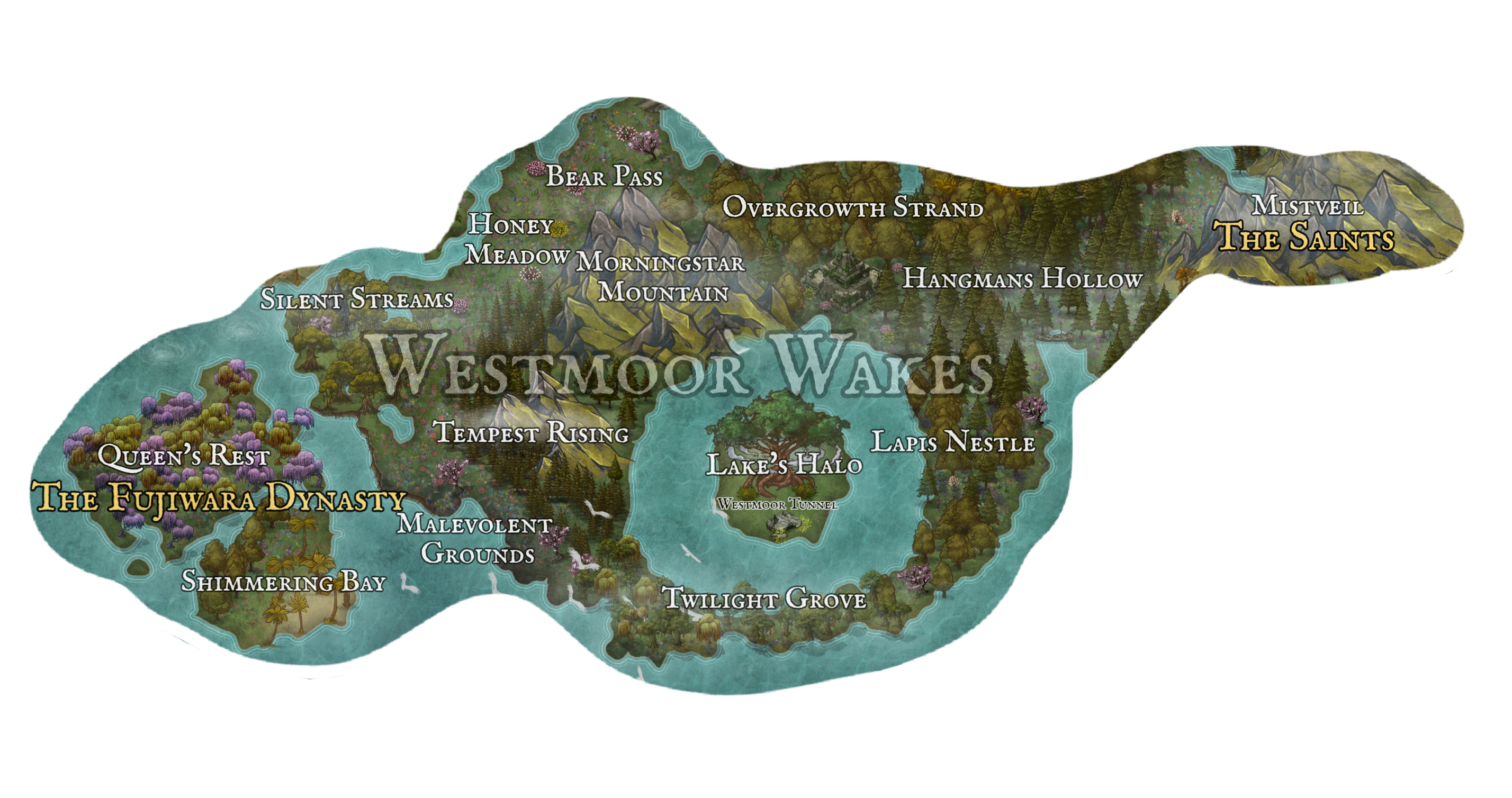 Internal TerritoriesBear PassHangman's HollowHoney MeadowLake's HaloLapis NestleMalevolent GroundsMistveilMorningstar MountainOvergrowth StrandQueen's RestShimmering BaySilent StreamsTempest RisingTwilight Grove